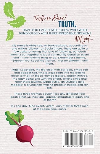 Lettuce Turnip the Beet is an MMFM scorching, why choose romance, featuring three devastatingly gorgeous heroes. It contains an age gap, grumpy/sunshine with a bi-awakening and a HEA. This is intended for readers 18+ and as always, please check triggers before reading. Paperback version includes Bonus Epilogue.